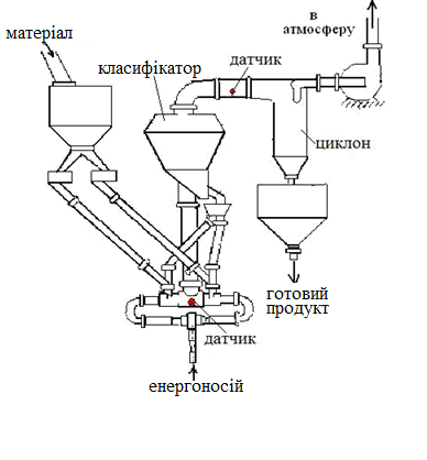 | Температура робочого повітря на вході в помольну камеру, °К | 290…1100 |