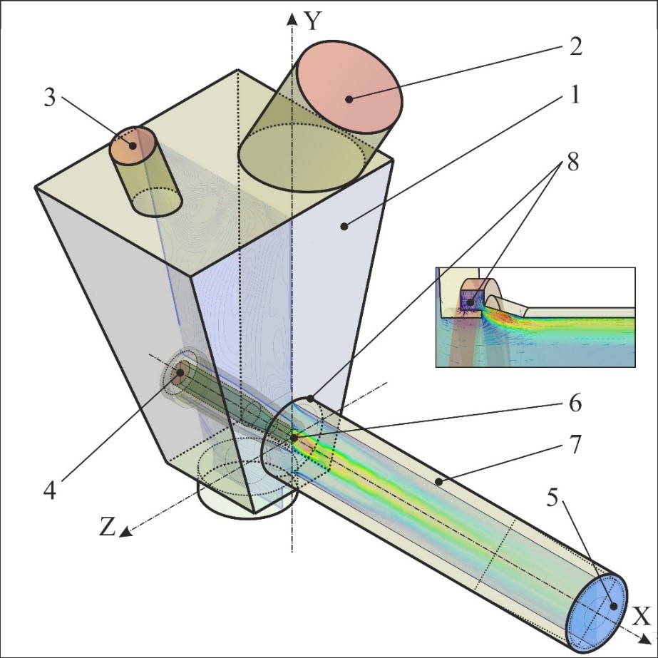 7 – розгінна трубка;  8 – канал підведення додаткового потоку енергоносія