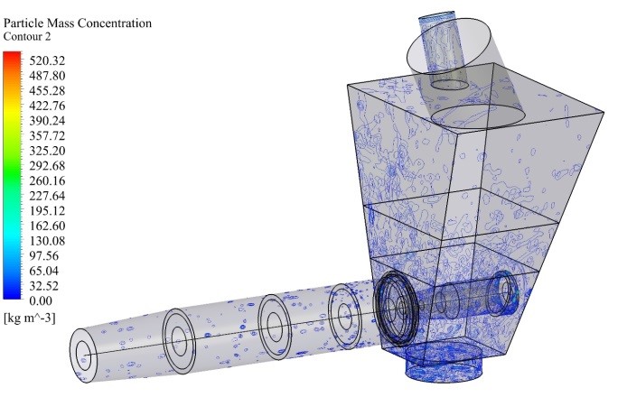 Рисунок 2 – Концентрація твердих часток на стінці розгінної трубки млина до (а) і після (б) модернізації